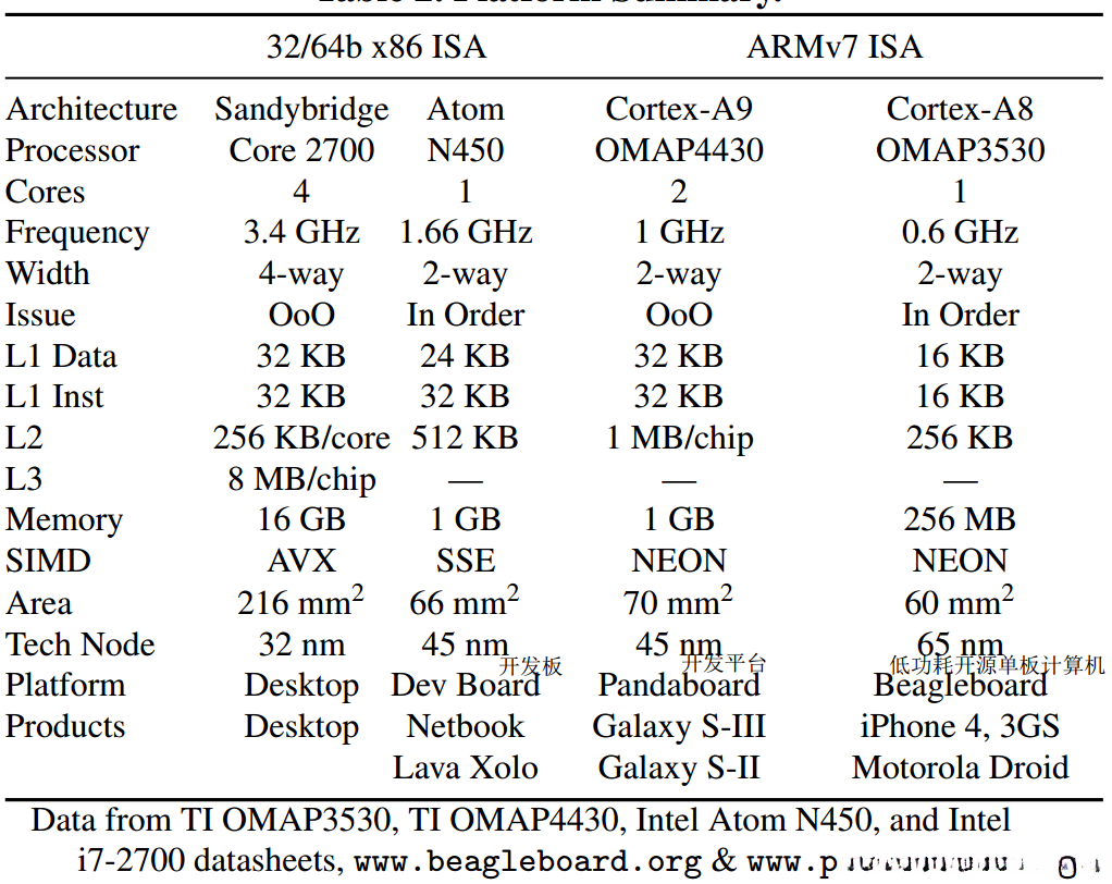 * 论文使用了移动,台式机和服务器计算的工作负载对ARM Cortex-A8和Cortex-A9以及Intel Atom和Sandybridge i7微处理器进行了测量