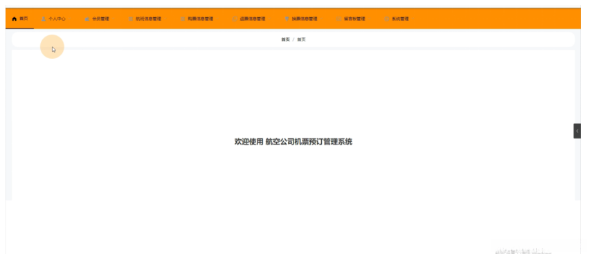 管理员通过登录访问航空公司机票预订管理系统后可浏览基础功能区和高级功能区的信息包括首页个人中心会员管理等基础服务项目以及航班信息管理购票信息管理退票信息管理和换票信息管理等核心业务模块同时可查阅系统界面设计见图4-7