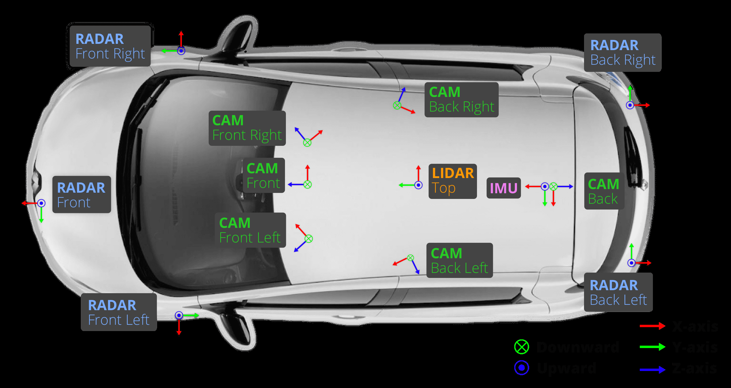 {‘RADAR_FRONT’: ‘37091c75b9704e0daa829ba56dfa0906’, ‘RADAR_FRONT_LEFT’: ‘11946c1461d14016a322916157da3c7d’, ‘RADAR_FRONT_RIGHT’: ‘491209956ee3435a9ec173dad3aaf58b’, ‘RADAR_BACK_LEFT’: ‘312aa38d0e3e4f01b3124c523e6f9776’, ‘RADAR_BACK_RIGHT’: ‘07b30d5eb6104e79be58eadf94382bc1’, ‘LIDAR_TOP’: ‘9d9bf11fb0e144c8b446d54a8a00184f’, ‘CAM_FRONT’: ‘e3d495d4ac534d54b321f50006683844’, ‘CAM_FRONT_RIGHT’: ‘aac7867ebf4f446395d29fbd60b63b3b’, ‘CAM_BACK_RIGHT’: ‘79dbb4460a6b40f49f9c150cb118247e’, ‘CAM_BACK’: ‘03bea5763f0f4722933508d5999c5fd8’, ‘CAM_BACK_LEFT’: ‘43893a033f9c46d4a51b5e08a67a1eb7’, ‘CAM_FRONT_LEFT’: ‘fe5422747a7d4268a4b07fc396707b23’}
