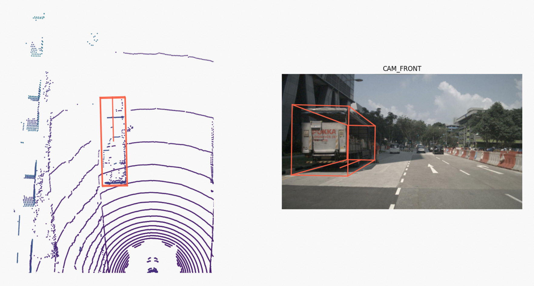 {‘token’: ‘83d881a6b3d94ef3a3bc3b585cc514f8’, ‘sample_token’: ‘ca9a282c9e77460f8360f564131a8af5’, ‘instance_token’: ‘e91afa15647c4c4994f19aeb302c7179’, ‘visibility_token’: ‘4’, ‘attribute_tokens’: [‘58aa28b1c2a54dc88e169808c07331e3’], ‘translation’: [409.989, 1164.099, 1.623], ‘size’: [2.877, 10.201, 3.595], ‘rotation’: [-0.5828819500503033, 0.0, 0.0, 0.812556848660791], ‘prev’: ‘’, ‘next’: ‘f3721bdfd7ee4fd2a4f94874286df471’, ‘num_lidar_pts’: 495, ‘num_radar_pts’: 13, ‘category_name’: ‘vehicle.truck’}