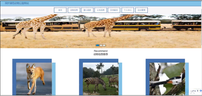 该公益网站致力于保护濒危动植物,在首页能够查阅动植物信息、参与爱心捐赠、浏览公告内容以及在指定区域提供线上留言区和个人中心功能,并提供详细的使用指南。