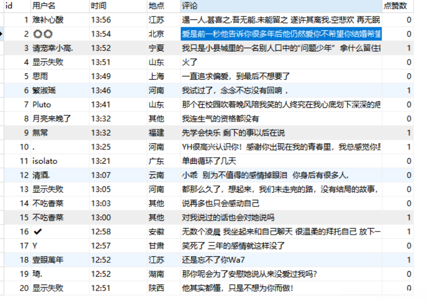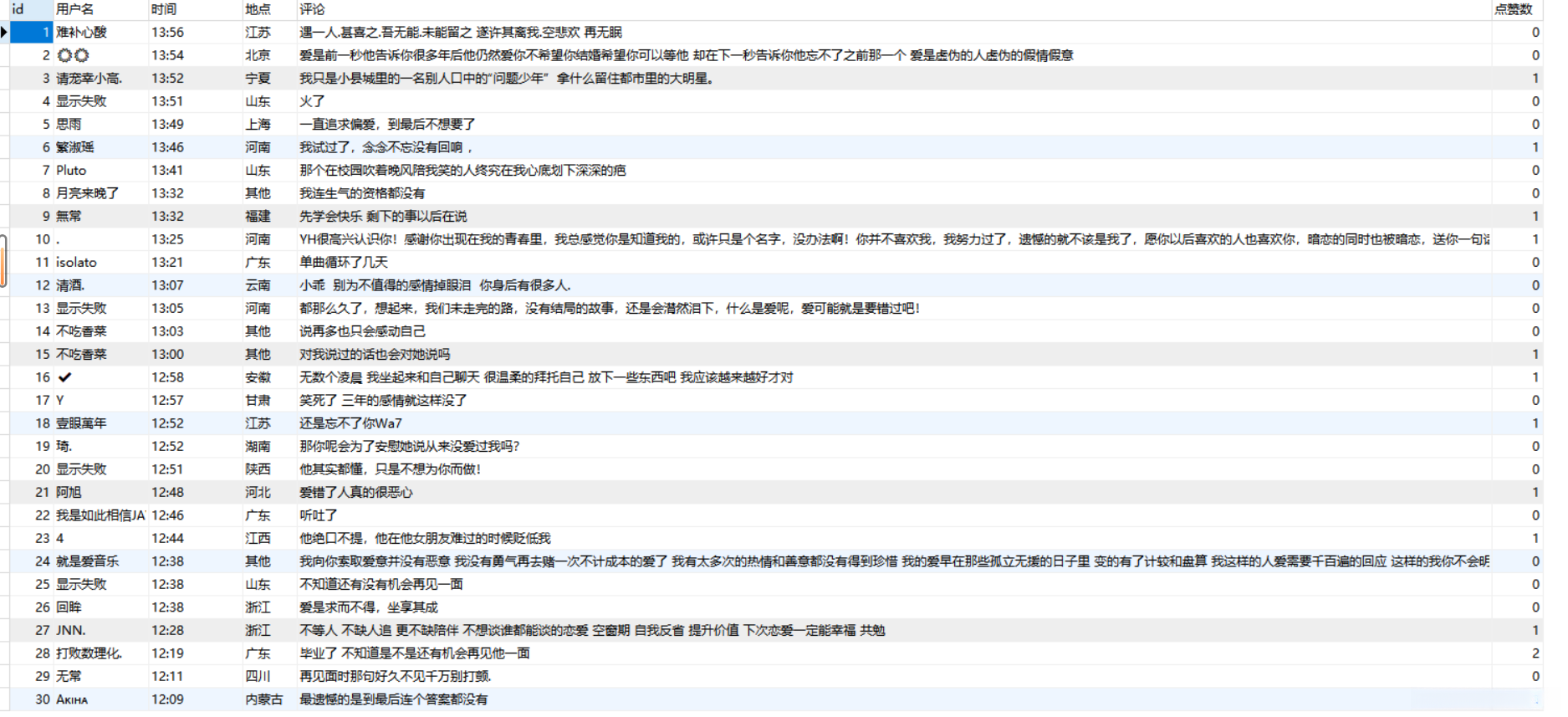 本文抓取的是某音乐评论,将数据保存到mysql数据库,并生成词云。