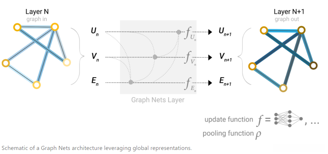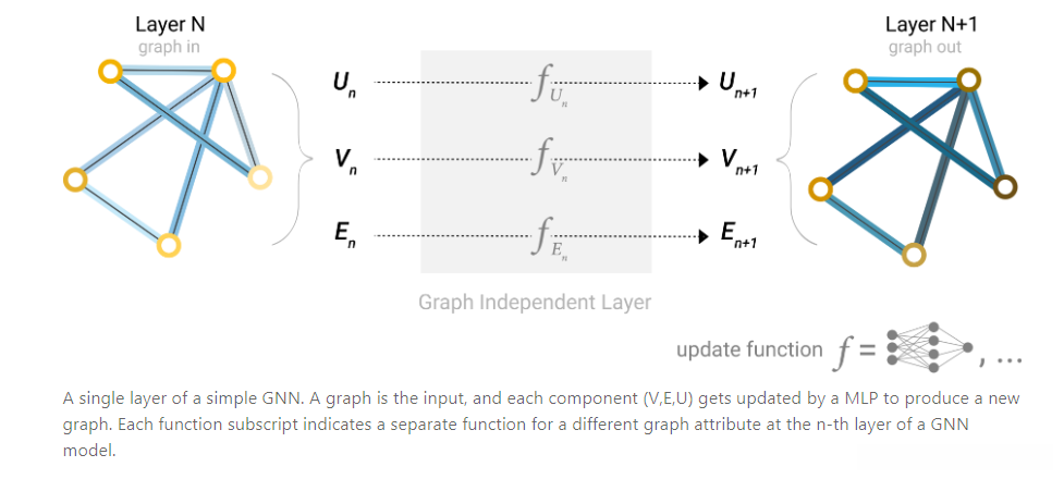 这篇博客的GNN是用“信息传递神经网络”框架来搭建的,GNN的输入是一个图,输出也是一个图,它会对你的图的属性(点,边,全局信息)进行变换,但不会改变图的连接性,就是哪条边连接哪条顶点,这个信息是不会改变的。