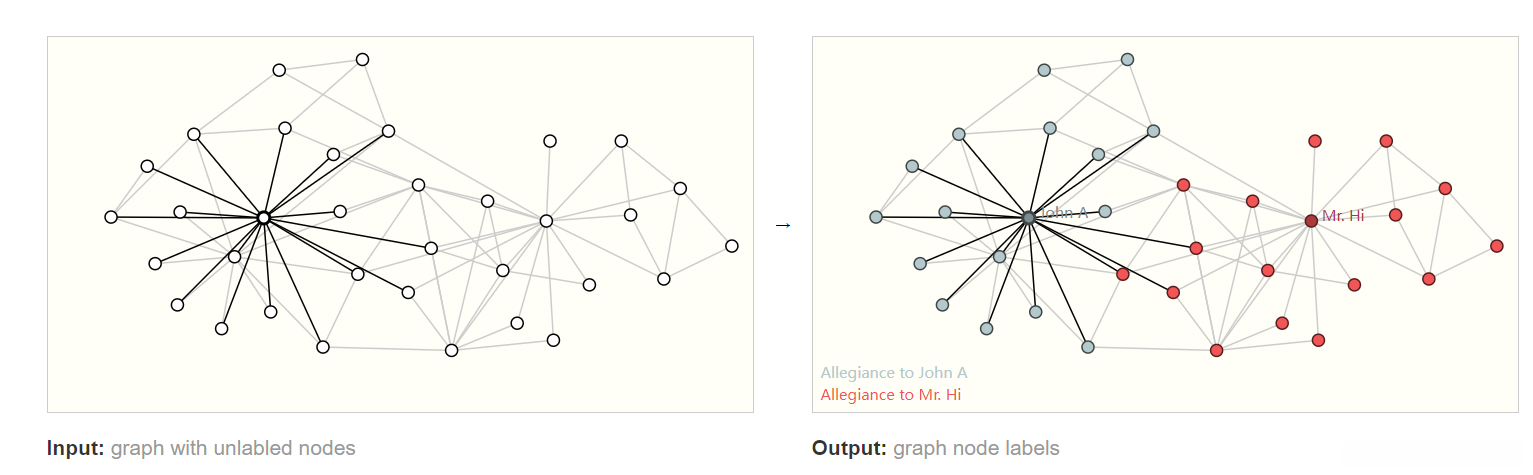 前面武术班的例子,假如说两个老师决裂,根据该社交图预测学生会选择哪个老师