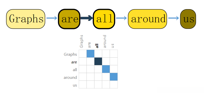 句子中的每个单词可以表示成一个节点,有向边表示这些单词的链接关系.