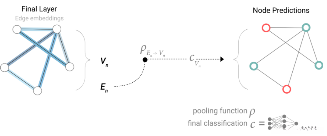 但是,如果顶点中没有信息,信息储存在边中,我们就需要一种收集边信息的方法,将其用作顶点预测。我们可以通过池化来完成这一步。