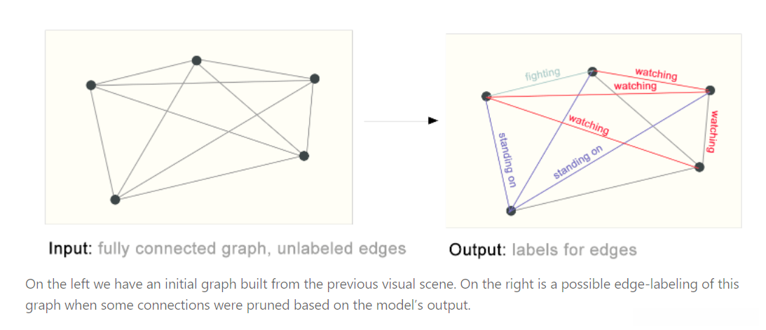 先给出一张图片,然后经过语义分割将人物给分割出来,然后预测人物间的关系;这个图中顶点已经有了,相当于是预测边的属性。