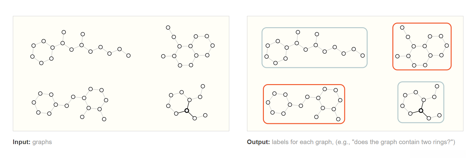 在这个任务中,目标是预测图形的属性,辨别图中是否含有两个环;该任务是分类问题