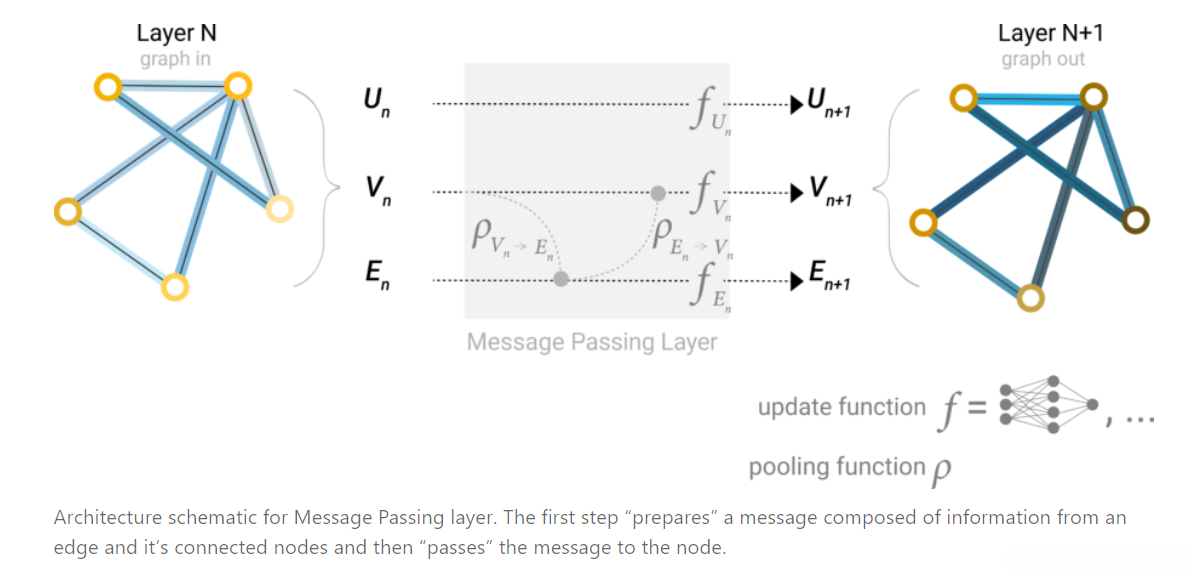 我们在上文介绍了如何使用池化将边的信息用来做顶点的预测,但是这一步仅仅在最后的预测步骤中。我们可以使用消息传递,在GNN层内进行顶点和边的信息共享。