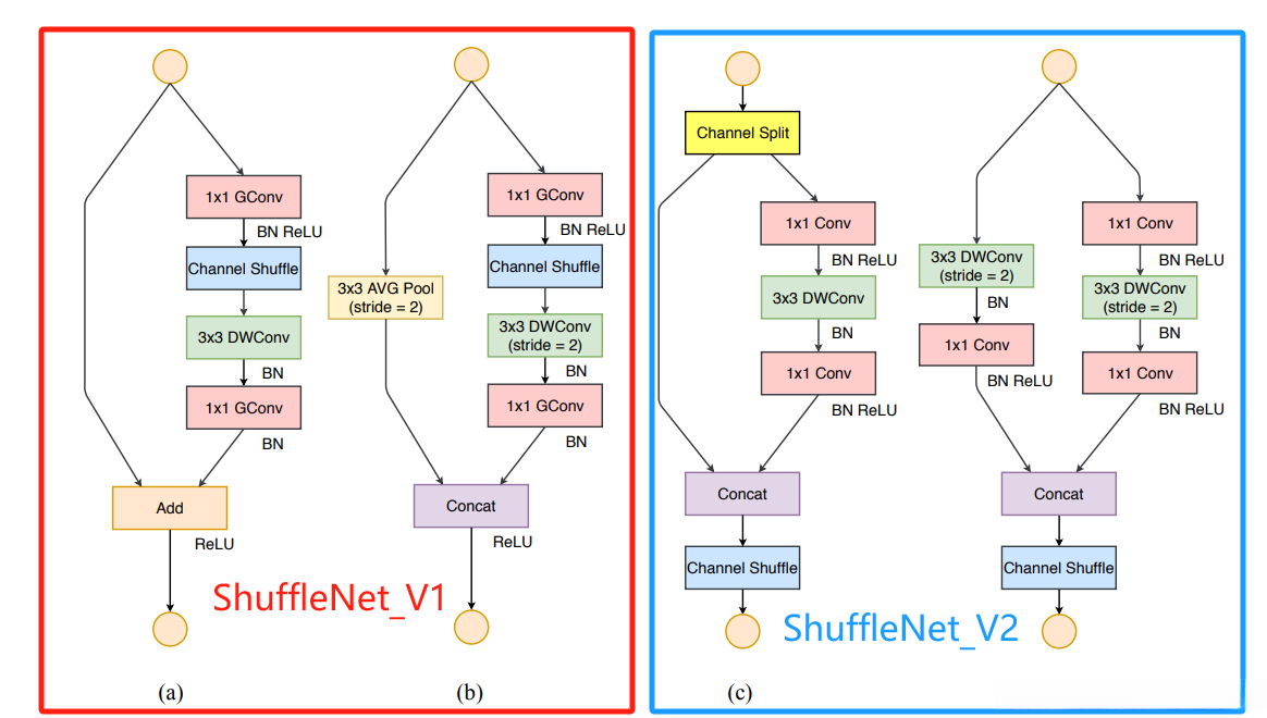内存访问成本最小化 :ShuffleNetV2试图最小化内存访问成本(MAC),通过精细调整组的数量和结构,找到了计算效率和模型性能之间的最佳平衡点2。