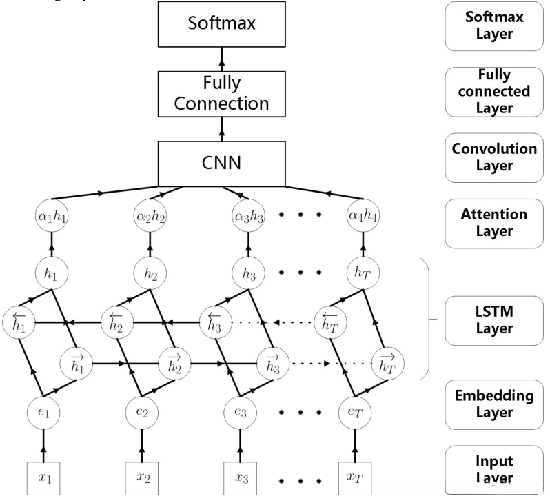 作为序列化,句子被视为LSTM网络中单词的有序序列。但是,在大多数情况下,相反的顺序可能会对结果有很大帮助。为了充分考虑句子的有序性和单词之间的相关性,提出了双向LSTM来解决此问题。 Tang等人4提出了一种基于LSTM的语义关系分类学习模型,发现BLSTM比LSTM可以发现更丰富的语义信息并充分利用上下文信息。 Zhou等人5利用BLSTM从单词嵌入中获得了高级语义信息特征,并完成了句子级关系分类。