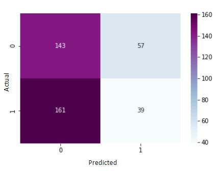 先前的研究和期刊出版物已经表明,域适应可以提高乳腺癌分类器的准确性。为了验证该想法,我们在增强图像上训练了一个新模型,以使该模型对颜色和方向的变化更加鲁棒。对来自不同域的数据进行模型测试时,准确性为55.25%。尽管此域中的性能仍然明显小于原始域中的性能,但它确实证明了域自适应可以对基线模型进行一些改进。此外,我们可以观察到模型预测的巨大变化。基线模型倾向于高估没有癌症。但是,这种新模型存在相反的问题,并且高估了癌症。该模型的混淆矩阵如图5所示。