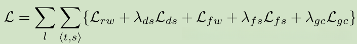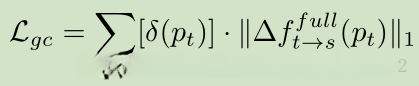 通过适当修改将第一阶段的监督范围适当扩展至当前阶段,在预测流 (full)f(t-s) 完成后对任意一对目标帧与源帧之间进行图像变形处理,并使用 (full)I~ 替代 (rig)I~ ,从而获得 full flow 的 warping loss 。类似地,在2D光流场中也实现了平滑损失的扩展。