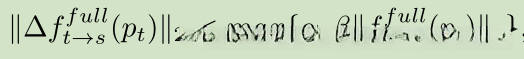 其中, (delta)f 是目标帧 I(t) 在像素 p(t) 处前后一致性检验计算得到的 full flow 的微分。 [ ] 是 Iverson bracket,[P] 等于1(如果条件P为真,否则等于0)。 delta(pt ) 表示条件: