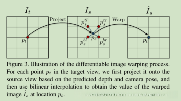 由 ** _通过目标帧到源帧的刚性流...** (具体解析详见《Unsupervised Learning of Depth and Ego-Motion from Video》,下图出自该论文。)
