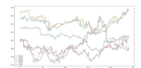 我们推测,在分析结果中发现一组数据与其他一组数据之间显示出较高的相关性;具体而言,在这四组数据中存在明显强于其他组合的趋势,并且基于此判断结果选择这对变量进行配对交易。