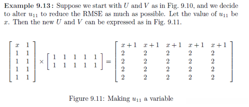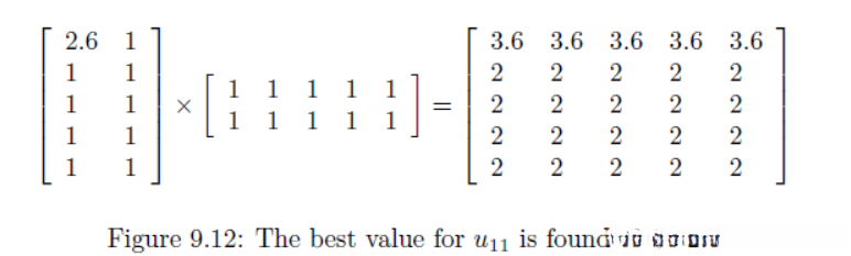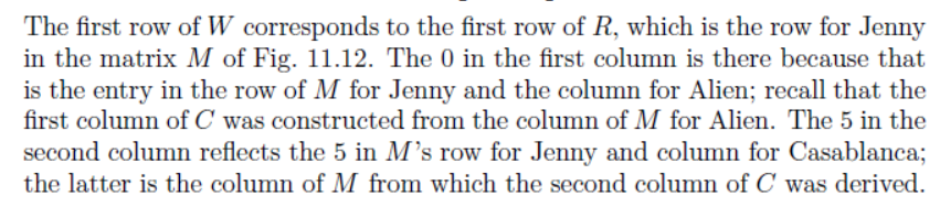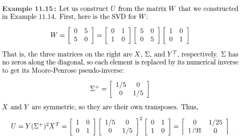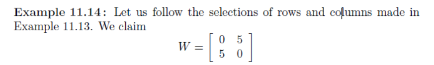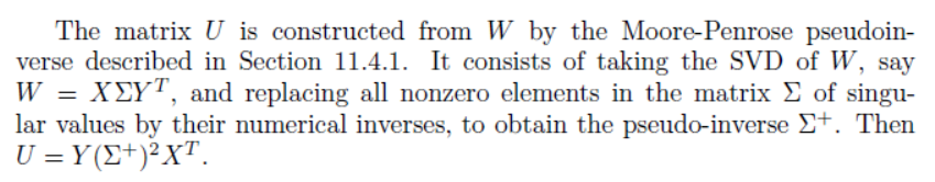 U是一个r*r的矩阵,我们用一个大小相同的矩阵W来创建U。W的第i行第j列所对应的元素是M中对应的元素,其行是R中的行,列是C中选中的列。