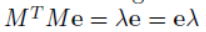 ---》Multiply both sides of this equation by M on the left. Then MMT (Me) = Mλe = λ(Me)