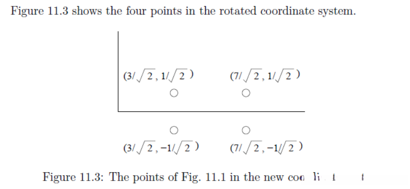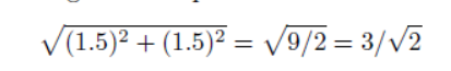 - 距离:第一个点和第二个点投影到该直线上,在原系统中的顶点表示为(1.5,1.5)其在原空间中距离原点为