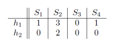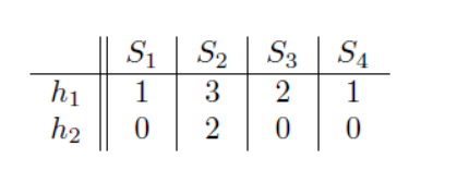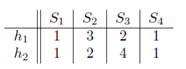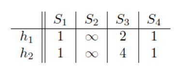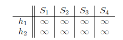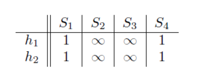 d)第三行(这里S2,S4取到,更新S2,但是S4取到的h值大于原来,所以不更新)