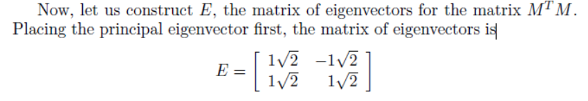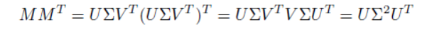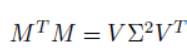 *矩阵M的SVD强烈连接到对称矩阵 MTM和MMT的特征值 。从两者的关系中,找到最终的分解