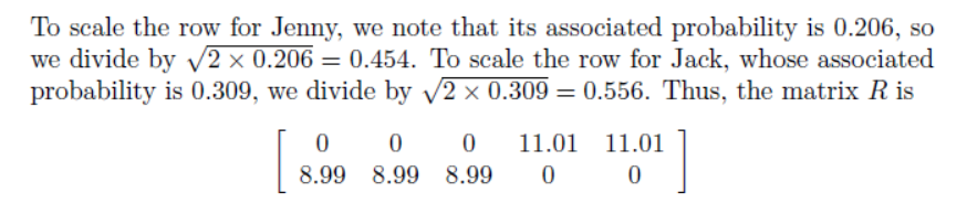(也就是说,如果选择了M的第j列的元素,则用√rqj划分。 M的缩放列成为C列。)同理,对M进行行处理。