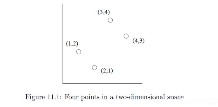 *从上面的实例抽取出一般原则:如果M是一个矩阵,其行代表空间中具有任意数量维度 的每个点(理解:就相当于行是点坐标),我们可以计算