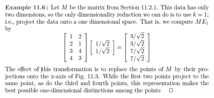 - That is, let Ek be the first k columns of E. Then MEk is a k-dimensional representation of M
