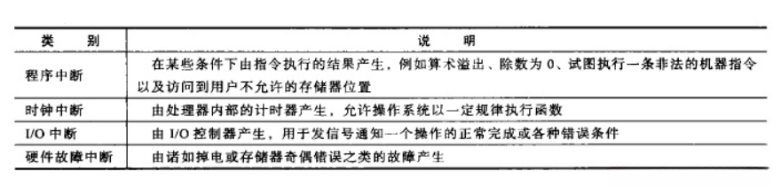 - I/O命令:如果不使用中断,执行命令时,程序必须等待I/O设备执行请求的函数(或周期性地检测I/O设备的状态或轮询I/O设备)。程序可能通过简单地重复执行一个测试操作的方式进行等待,以确定I/O操作是否完成