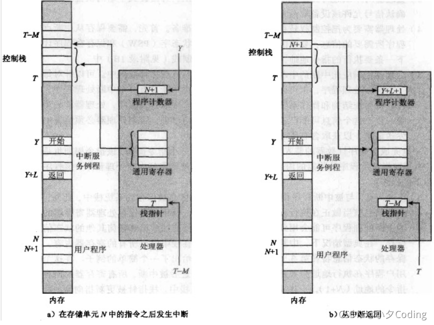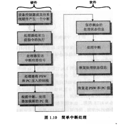- 当外部设备做好服务的准备时,也就是说,当它准备好从处理器接收更多的数据时,该外部设备的I/O模块给处理器发送一个中断请求信号。这时处理器会做出响应,暂停当前程序的处理,转去处理服务于特定I/O设备的程序,这个程序称为中断处理程序。在对该设备的服务响应完成后,处理器恢复原先的执行
