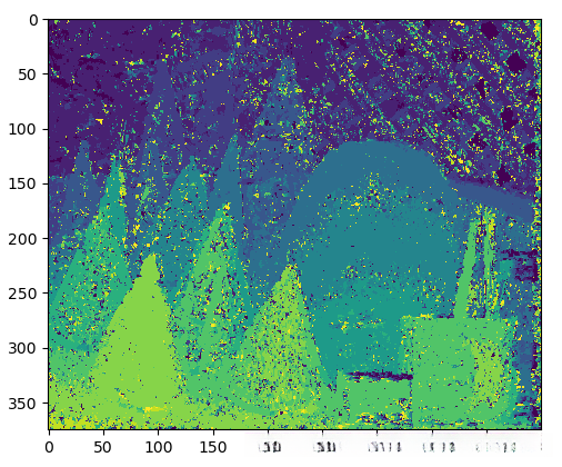 res = plane_sweep_ncc(im_l, im_r, start, steps, wid)
