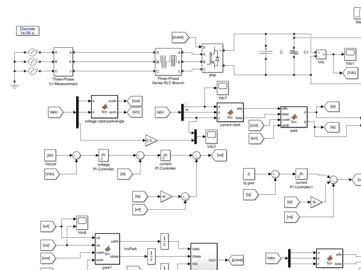 在闭环控制中,主电路作为基础模块,对输入电压进行整流和转换。本文建立了主电路的数学模型,包括电阻、电感和电容等元件的等效电路,并通过坐标变换实现了对三相交流电的变换。