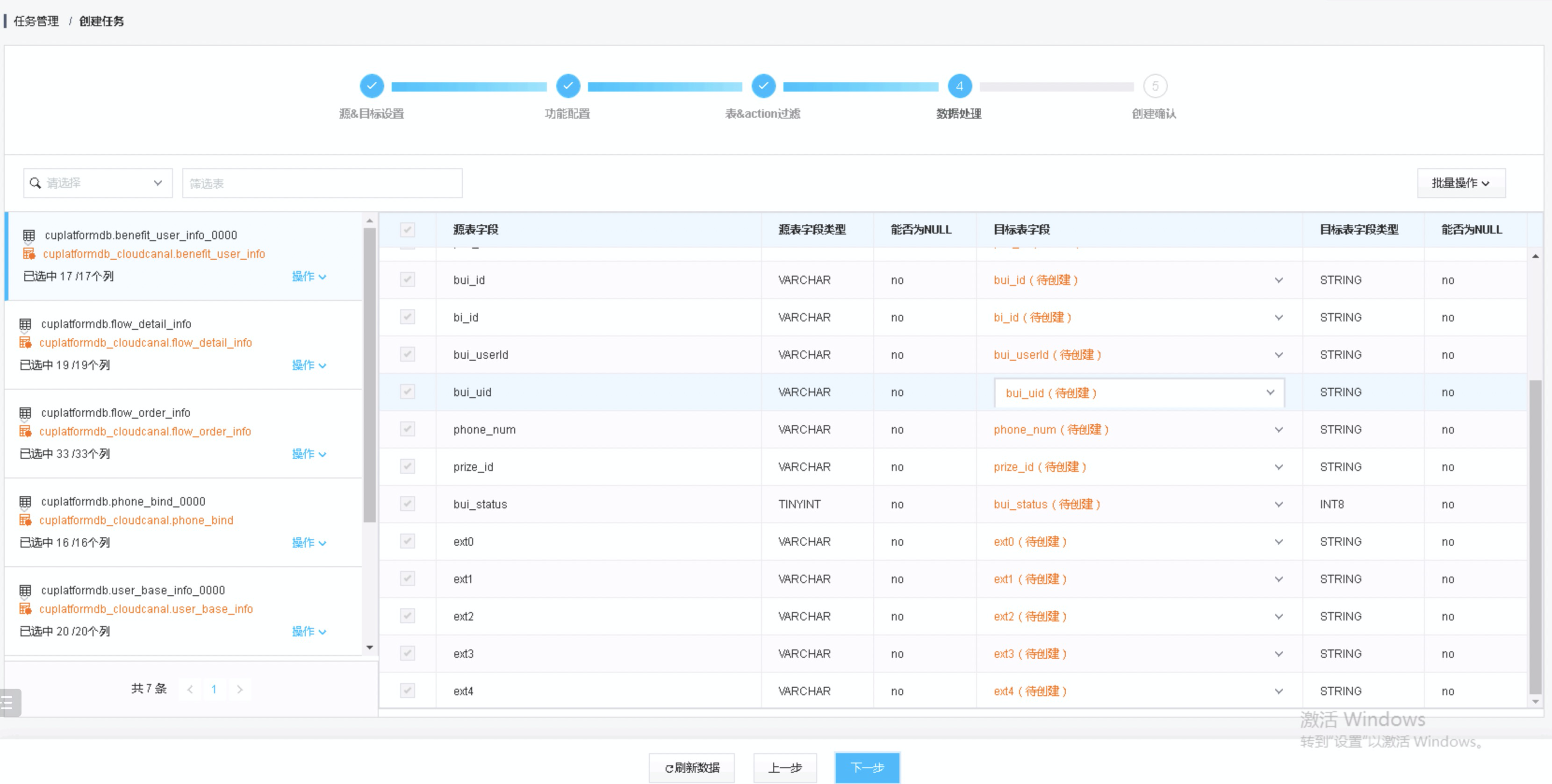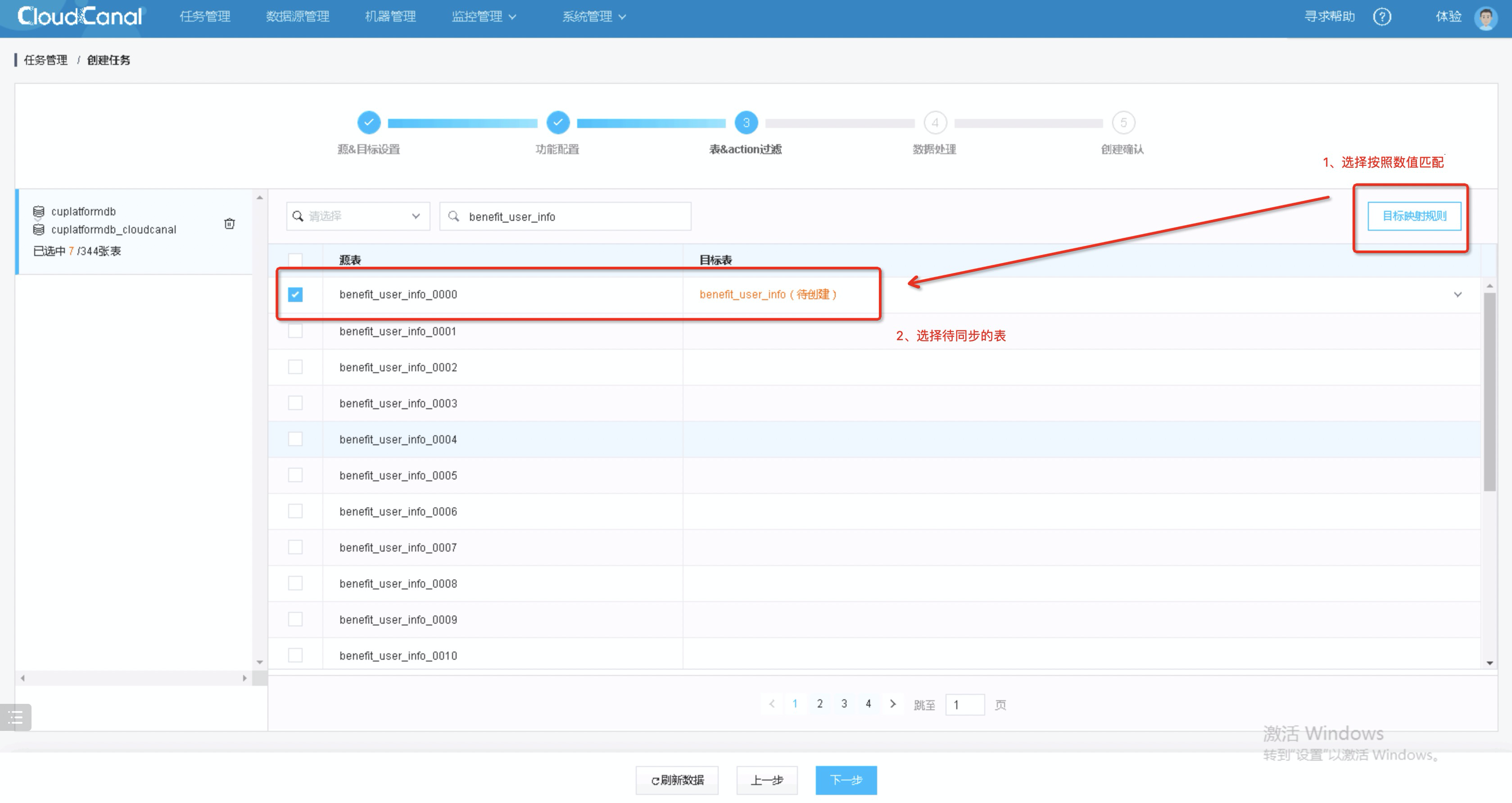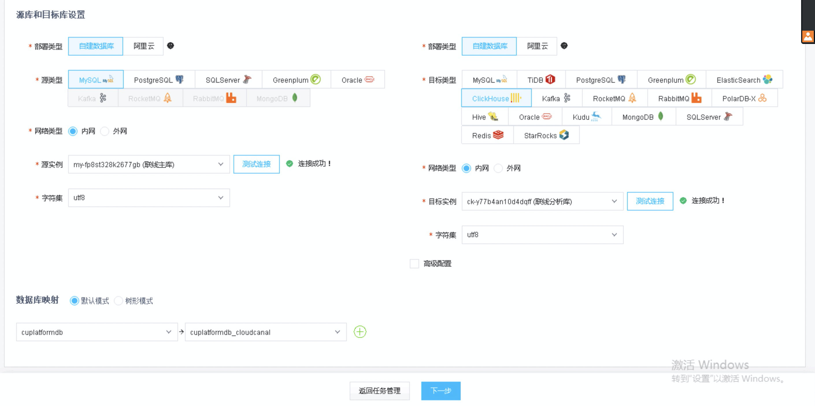 访问任务管理界面并执行创建新任务的操作。为操作设定起始和目标实例,并配置数据库映射设置以完成关联配置。