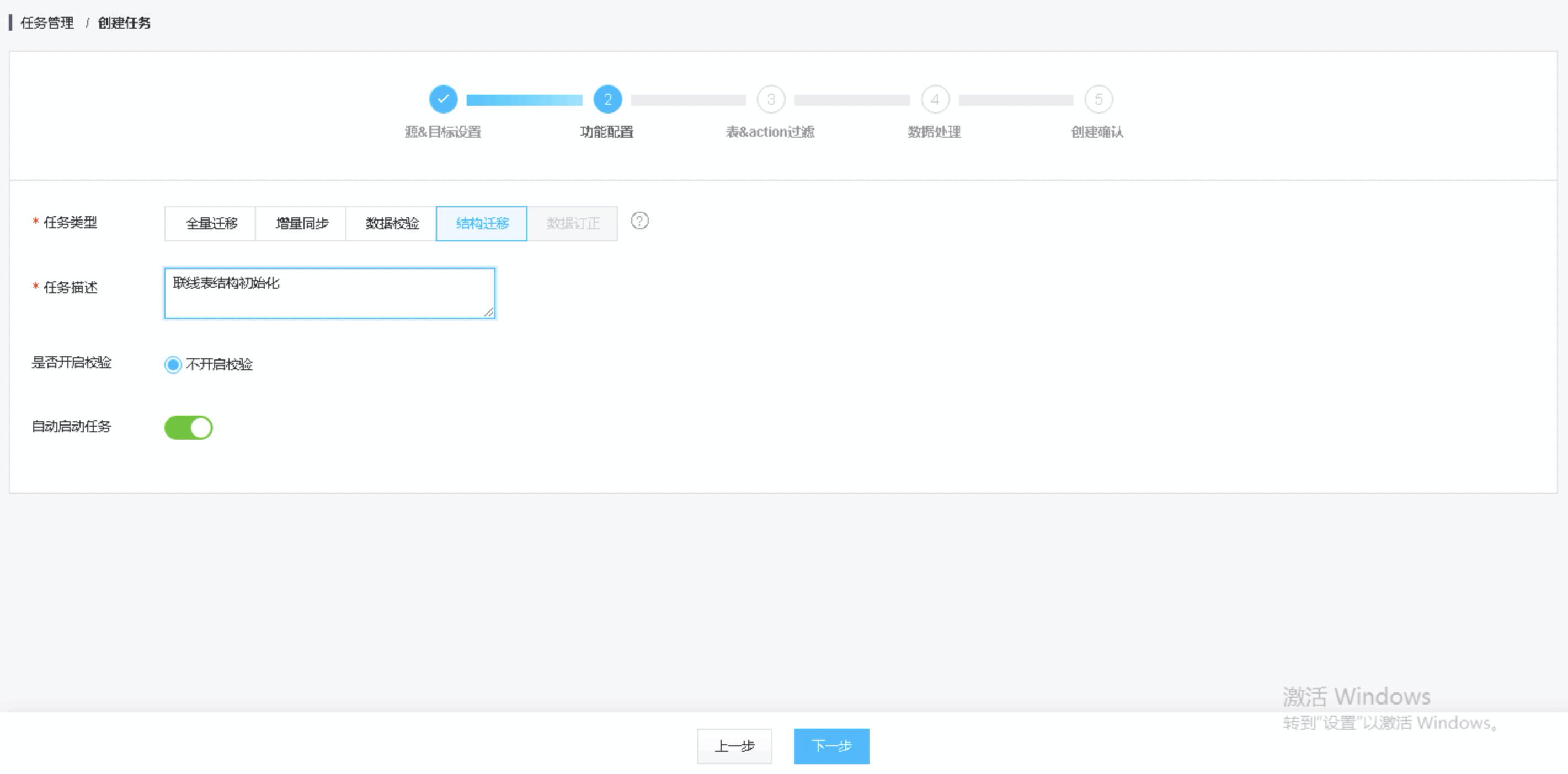 采用数据同步功能,在数据迁移中去除全量同步功能以及增量同步功能,并转而采用表结构迁移