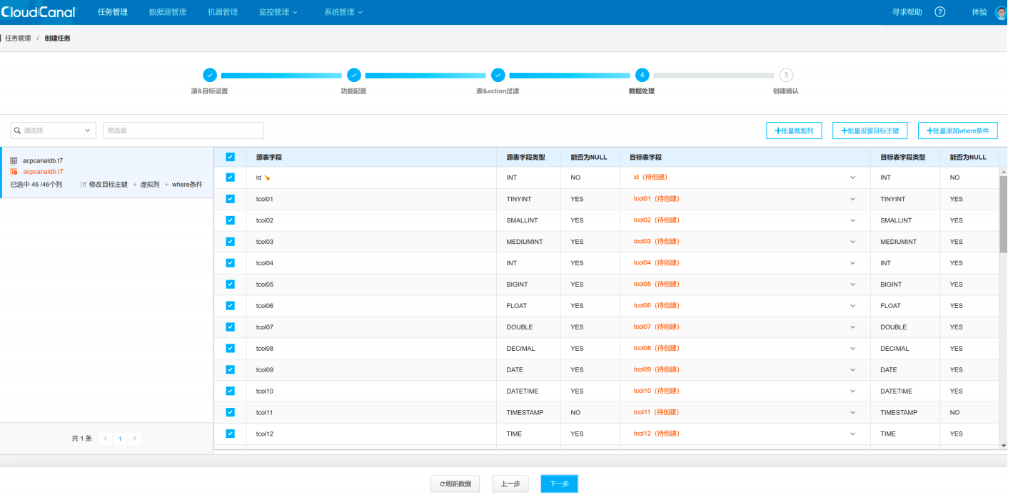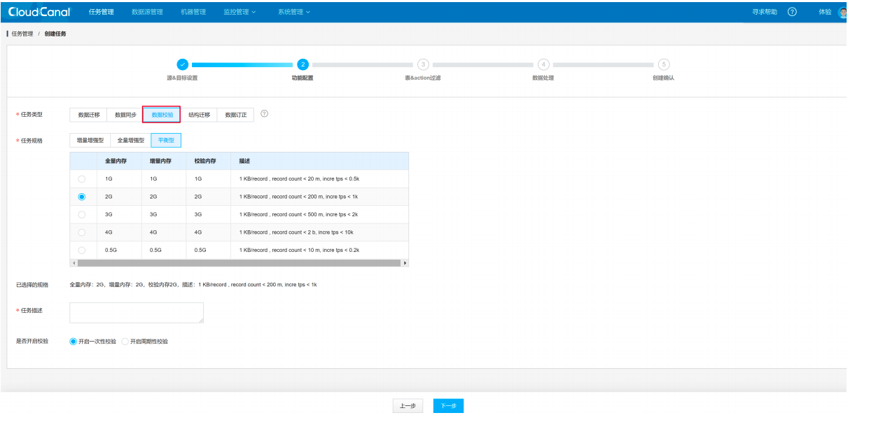 该模块用于检测两个库之间数据的一致性;访问任务管理页面后,在生成菜单中选择新建数据校验任务