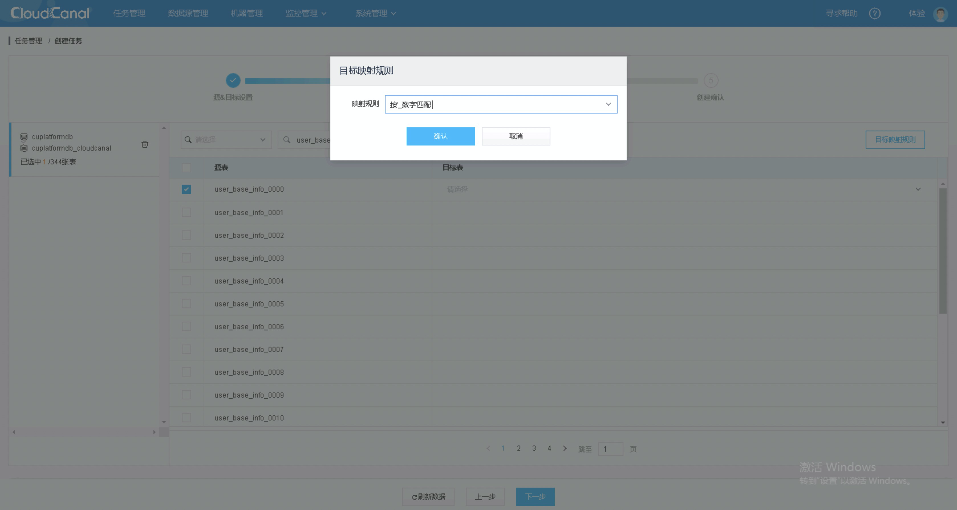访问任务管理页面后,请点击新增任务。请设置源实例和目标实例,并配置数据库对应关系。