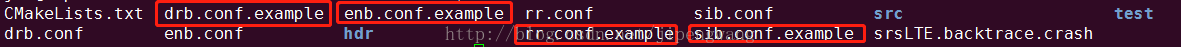 srsLTE的运行参数均采用配置文件进行,即只需要在运行程序后面加上配置文件即可,配置参数在配置文件中进行,其中srsLTE对于UE、eNB、EPC均提供了对应的示例配置文件,其放置位置在对应的srsue、srsenb以及srsepc文件夹下,且命名方式为 *.example,如下图所示为srsenb下面的配置文件: