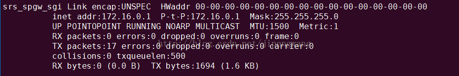 如上图所示为srsLTE运行界面,其中srseNB以及srsUE的GUI界面可以在配置文件中进行配置,并且运行eNB的电脑,虚拟网卡名称为srs_spgw_sgi,地址为172.16.0.1,运行UE的虚拟网卡名称为tun_srsue,地址与eNB侧同网段,如下两图所示: