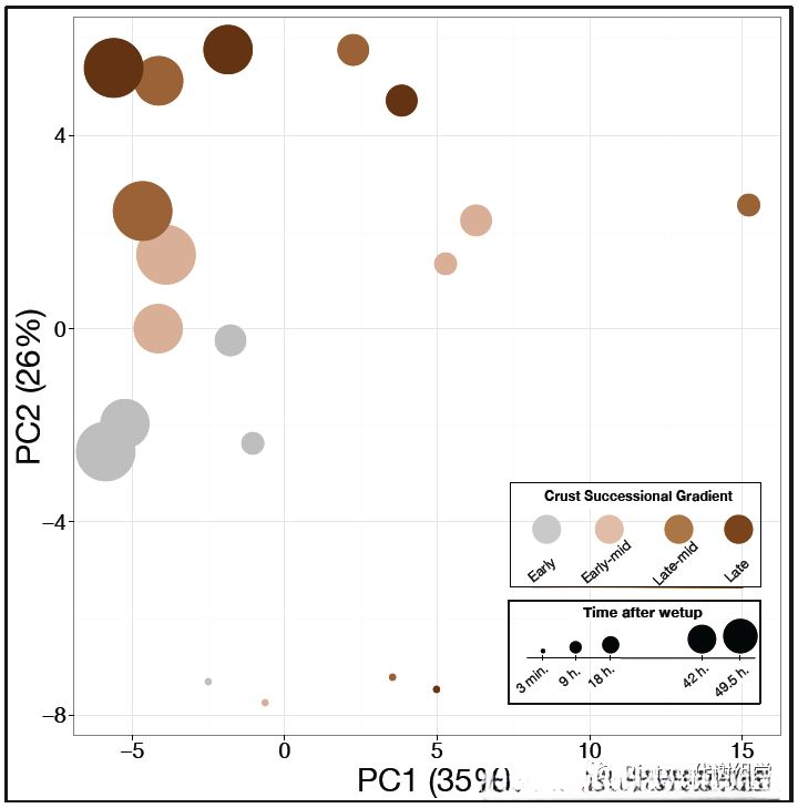 本研究采用metagenomic方法系统性地推断microbial communities的结构特征,并探讨了wetting duration及不同successional stages对这些结构特征的影响
