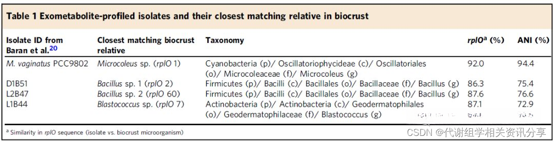 通过分离菌的胞外代谢组学推断生物结皮中微生物与代谢物关系