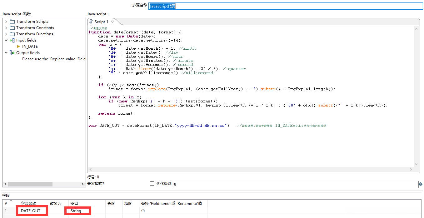 var DATE_OUT = dateFormat(IN_DATE,"yyyy-MM-dd HH:mm:ss") //函数调用,输出字段资格,IN_DATE为文本文件传过来的数据流