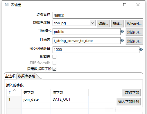 表输出: 用于将DATE_OUT信息注入到目标表 t_string_conver_to_date.join_date字段中。