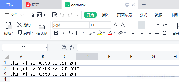 本次测试基于date.csv文件进行操作,csv文件中存储的CST时间数据格式如下: