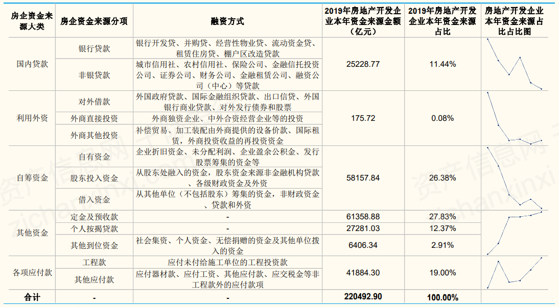 我们应不遗余力地推动建立多样化的房地产债权金融工具体系,在这一过程中涵盖三类金融产品:个人住房抵押贷款、个人住房储蓄存款以及住房公积金支持等。这些产品已全面融入房地产业务生态系统的各个领域,并成为我国房地产市场相关项目资金的主要直接来源。其中一项是针对施工企业垫付资金中的银行 Provided loans。根据调查,在我国大约60%的资金来源于银行;而对于开发项目的融资效率而言,在全部融资规模中占比高达75%以上。这将使银行业面临重大挑战