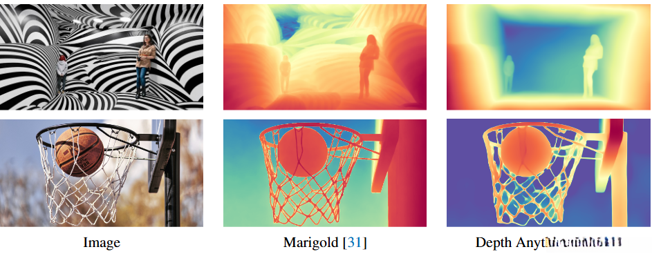 与DeepAnything V1 模型相比,Marigold模型在细节呈现上更胜一筹。