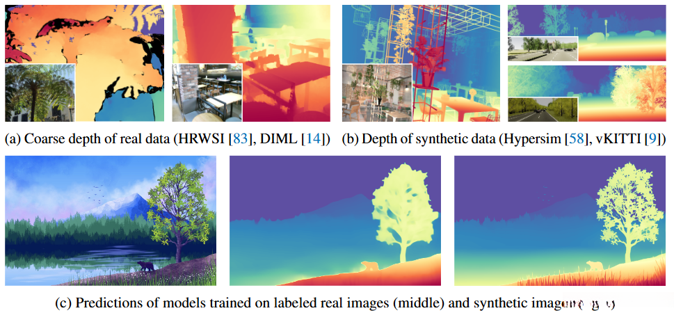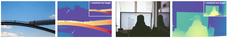 • 在大规模未标注的真实图像上生成精确的伪深度标签。