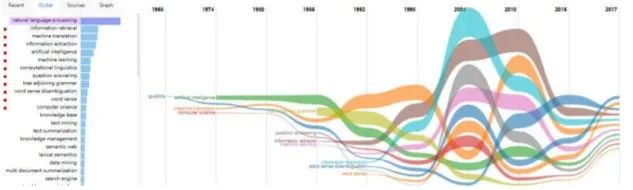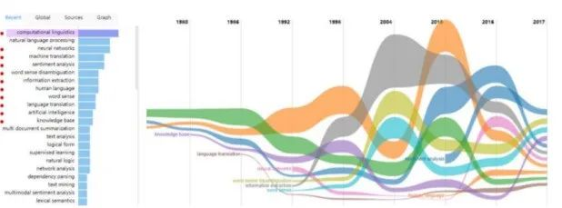 在1994至2017年间对自然语言处理领域的相关论文进行了系统性挖掘后发现,在过去二十年间该领域的核心关注点主要集中在以下几个关键方向上:计算机领域的核心概念如计算机语言与深度学习模型之间的关系;涉及人类认知机制的情感分析技术;以及机器智能在翻译与理解方面的应用;同时也不容忽视的技术难点包括语义消歧与信息提取能力;此外还涵盖了从知识库构建到复杂文本分析的多个维度。为了更深入地了解这一领域的研究动态和发展趋势本研究将重点考察基于历史研究积累的数据基础来进行系统性分析与预测