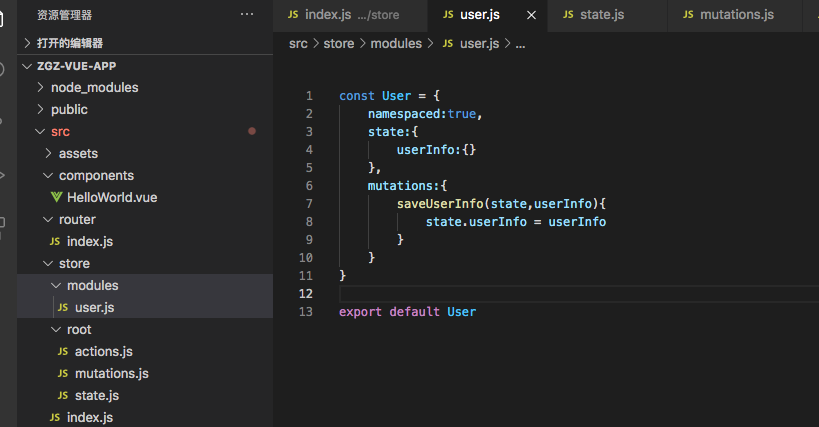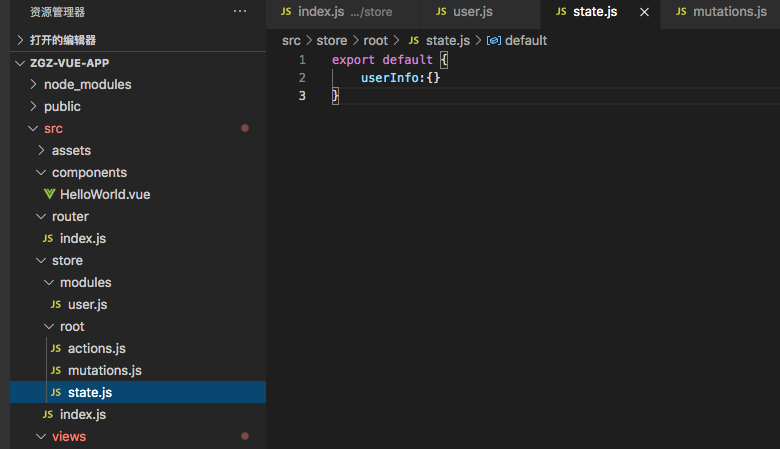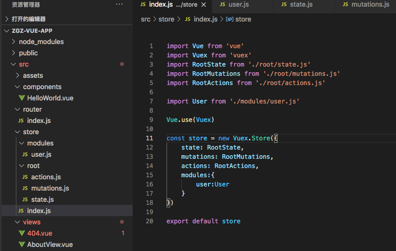 在项目根目录src下创建一个专门用于存储的目录结构。具体操作如下:首先生成一个名为"store"的子目录;接着在其内部创建一个index.js.js脚本用于核心逻辑实现;最后建立根目录和模块化存放组件的专门路径。