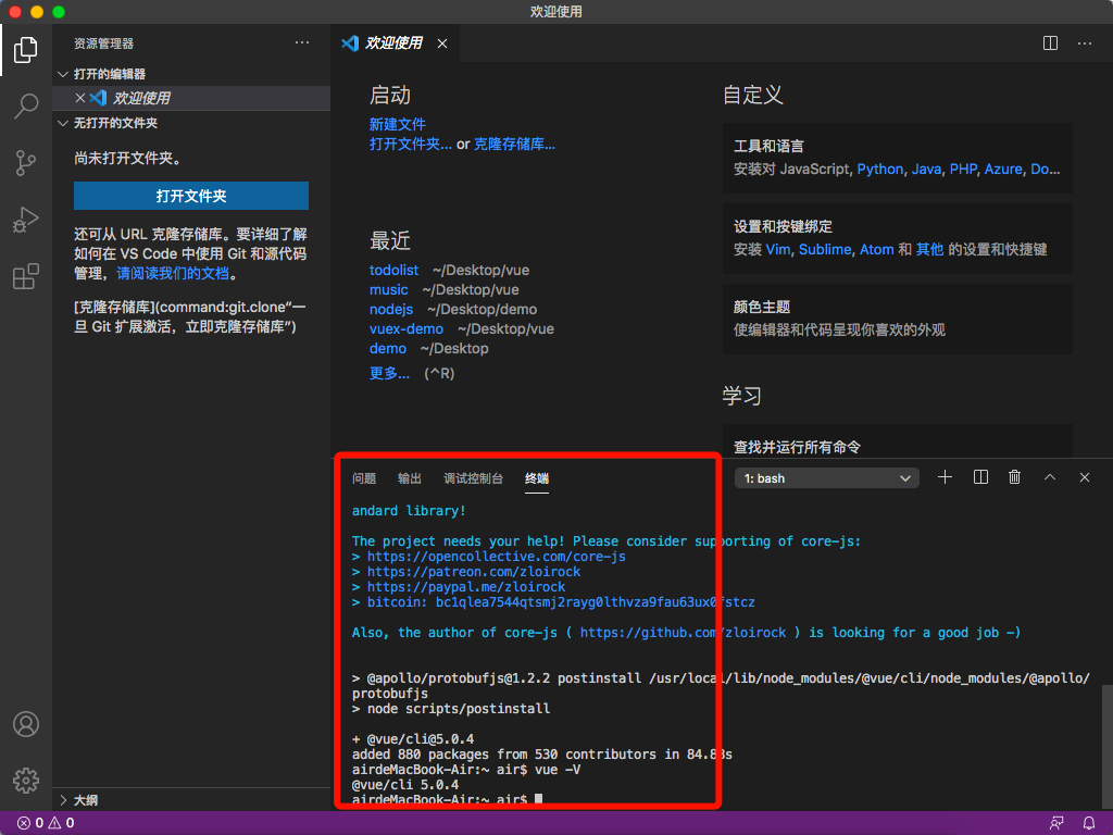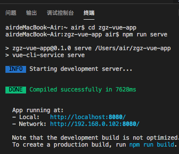 安装成功后,切换到项目目录下,输入npm run serve启动项目。