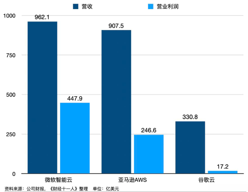 (2023年三大云厂商营收和营收利润)